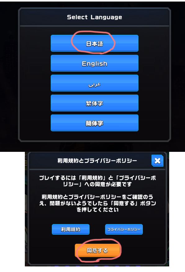 その後「日本語」を選び、利用規約とプライバシーポリシーに同意します。