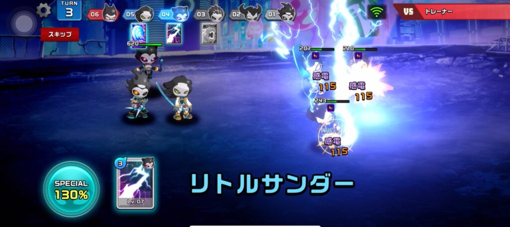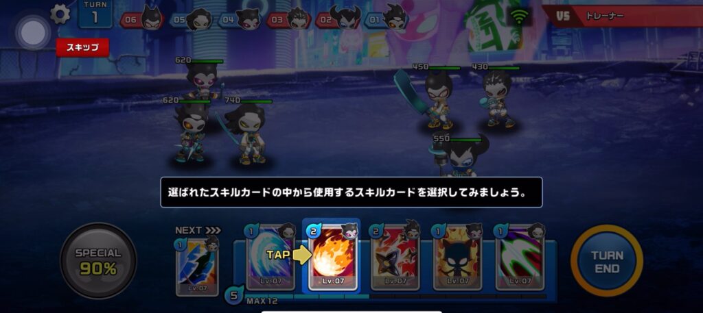 スキルカードを使って技を繰り出していく感じはトレカバトルみたいだね。
