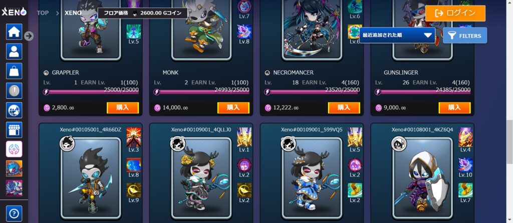 PROJECT XENO(ゼノ)で稼ぐには、マーケットプレイスでNFTキャラを購入する必要がある。