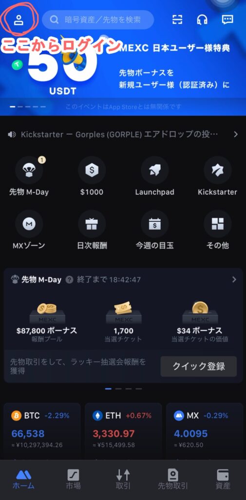 1. MEXCアプリを開く