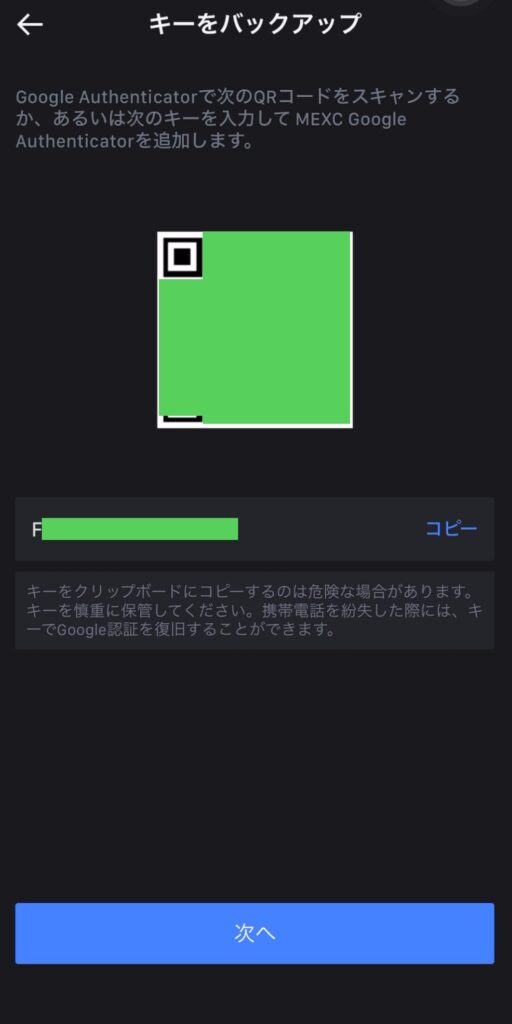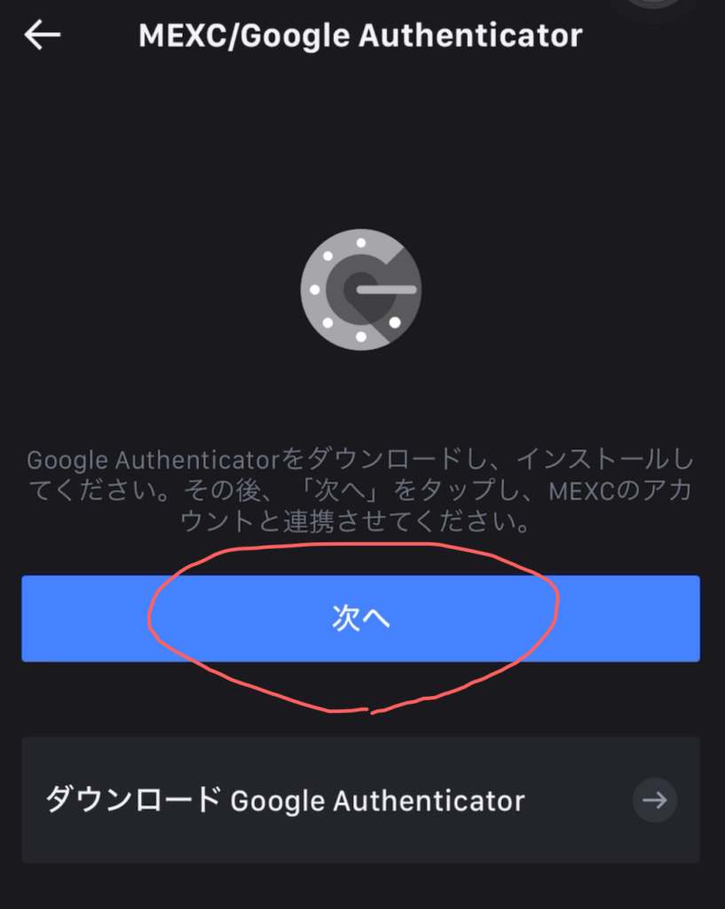 MEXCアプリに戻り、「次へ」をクリックします。